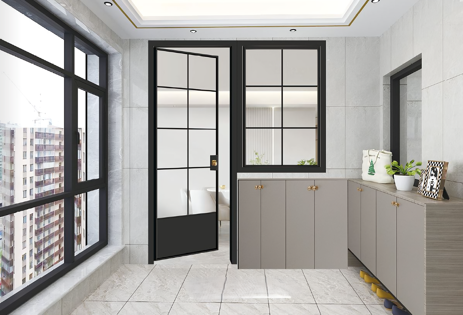 Enhance your home with the elegant Gridline Glass Door, featuring a clear glass panel with sleek black gridlines that provide a modern, sophisticated look while allowing ample natural light to brighten your space. The contemporary black frame and minimalist design make this door a perfect addition to modern living areas, dining rooms, or offices. Complementing the door is a matching window, creating a cohesive and stylish aesthetic. Both the door and window are crafted from high-quality materials, ensuring lasting durability and refined style. Transform your interior today with the Gridline Glass Door and Matching Window. Order now to elevate your space with this stylish touch!
