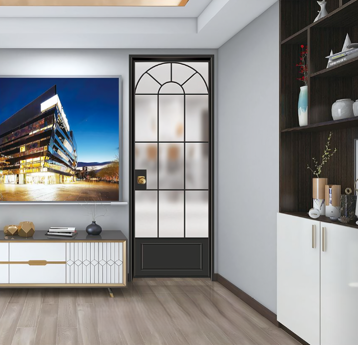 Introducing the Classic Arch Door, a timeless design that brings both elegance and functionality to your home. This door features a beautifully arched top with frosted glass panels that create a sense of privacy while allowing natural light to fill the room. The black frame, paired with intricate windowpane detailing, adds a sophisticated touch to any space. Perfect for living rooms, dining areas, or entryways, the Classic Arch Door seamlessly blends into both modern and traditional interiors. Enhance your home with this elegant door that promises durability and style. Order now to transform your living space with the Classic Arch Door.
